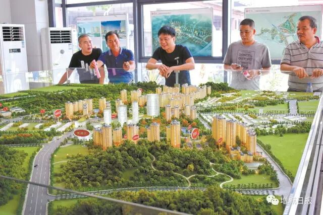 ▲村民到村委会参观旧村改造模型沙盘,畅谈美好生活